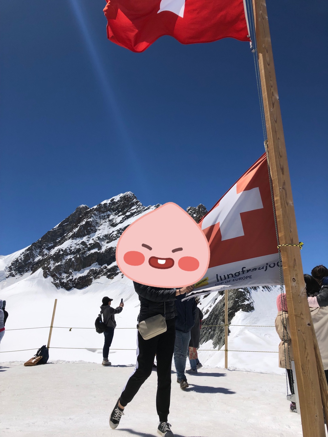 스위스 왔으면 꼭 한번 찍고 간다는 깃발 들고 인증샷 찍기!!!ㅋㅋㅋㅋ