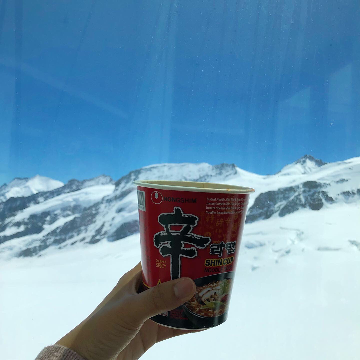 융프라우 vip패스권이 있으면 융프라우에서 신라면은 공짜로 먹을 수가 있어서 먹었습니당ㅇ
